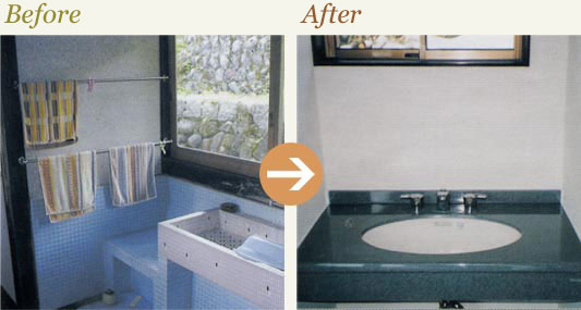 清潔感漂うカウンタータイプの独立した洗面台になりました。もちろん温水も使えます。