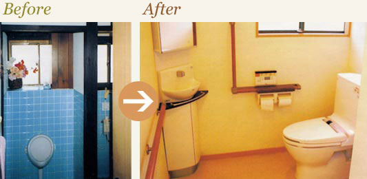 クロス貼りにし、便座も温水洗浄式便座に。清潔感漂うトイレになり、お年寄りにも安全なバリアフリーにしました。