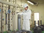 施設内各機器の運転状況を確認しています。各機器の電流値や作動状況に異常がないか確認します。